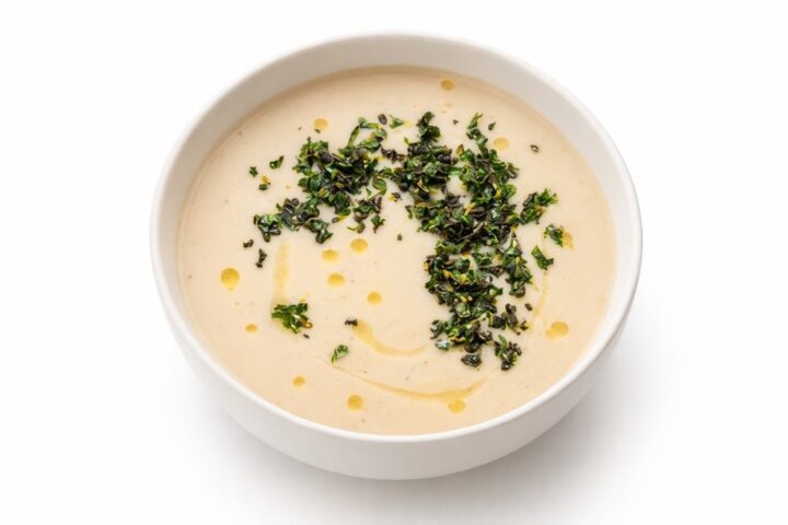 Jemná fazolová polévka s česnekem a bylinkami, hotová z dostupných surovin a ideální pro lehký oběd či večeři.
