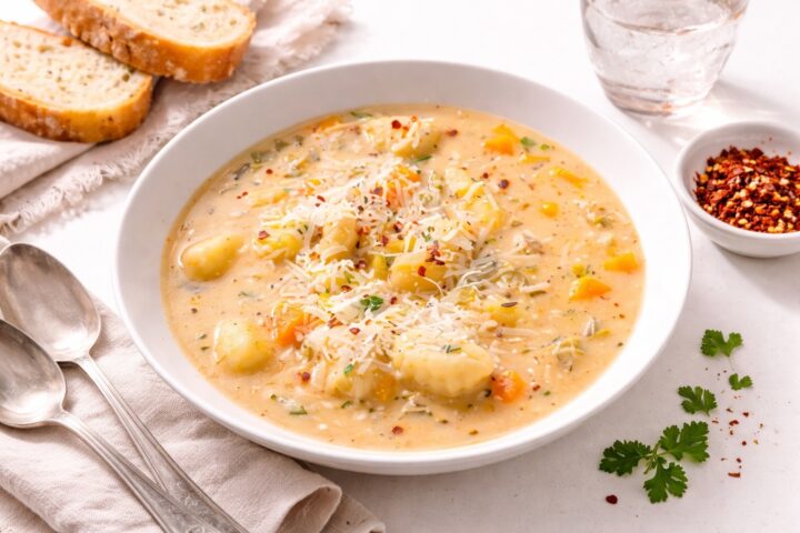 Krémová zeleninová polévka s noky je vyvážený a chutný pokrm, který zahřeje, zasytí a přitom nepůsobí těžce. Díky jednoduchému postupu a variabilitě dochucení se k němu snadno vrátíte i v běžném týdnu.
