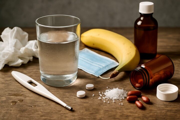 Viry, průjmy a zvracení způsobují velké ztráty tekutin a minerálů. Horečka navíc zvyšuje pocení. Vhodné je pít často malé dávky tekutin, nejlépe rehydratační roztoky.