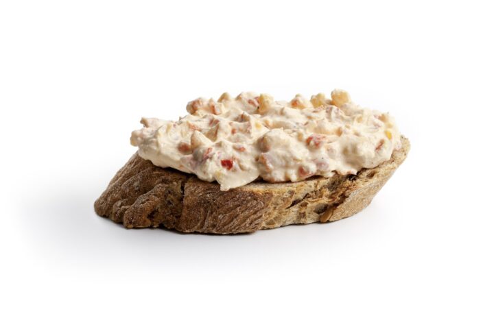 - Příprava pomazánky: Oloupanou papriku nakrájejte na velmi drobné kousky. V míse smíchejte žervé s nakrájenou paprikou. Přidejte tabasco podle chuti (8–10 kapek) a dochuťte špetkou soli a pepře. Vše důkladně promíchejte, aby vznikla jemná, rovnoměrná pomazánka.