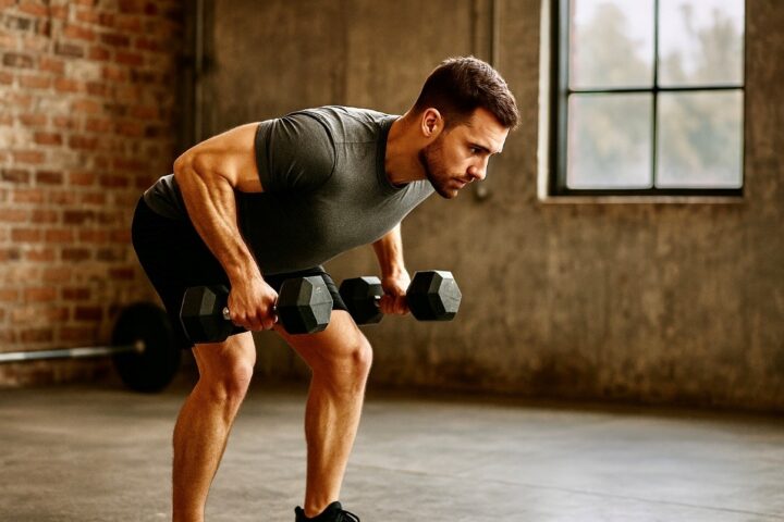 Přítahy činek v předklonu posilují široký sval zádový, trapézy i bicepsy. Zlepšují držení těla a pomáhají vyrovnat jednostranné přetížení z každodenních návyků.