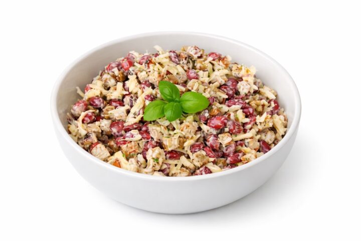 Salát z rýže s kuřecím masem a fazolemi je praktickým jídlem pro běžný den, kdy potřebujete rychle zasytit bez složitého vaření. Je chutný, výživný a snadno přizpůsobitelný podle aktuálních zásob v lednici.