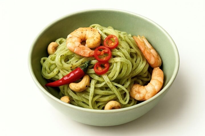 Skleněné nudle s asijským pestem představují vyvážené a moderní jídlo, které kombinuje svěžest bylinek, jemnou pikantnost koření a chuť mořských plodů. Výsledkem je lehké, ale zároveň syté jídlo, které se hodí pro každodenní vaření i jako zpestření běžného jídelníčku.