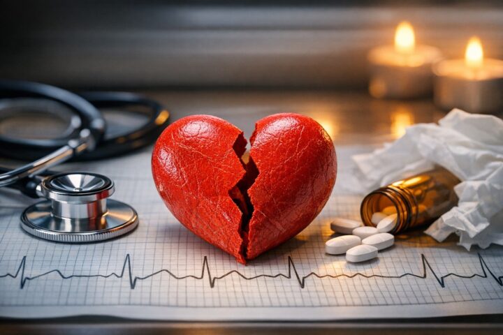 U části lidí může extrémní emoční stres vyvolat přechodnou poruchu srdeční funkce známou jako takotsubo kardiomyopatie. Klinicky se může podobat infarktu myokardu, včetně bolestí na hrudi a dušnosti, avšak bez typického uzávěru věnčitých tepen. Přehled o mechanismech a rizicích shrnuje velká klinická studie publikovaná v New England Journal of Medicine Clinical Features and Outcomes of Takotsubo (Stress) Cardiomyopathy. Ačkoli je tento stav relativně vzácný, ukazuje, že intenzivní emoční zátěž má přímé tělesné důsledky a vyžaduje lékařskou pozornost.